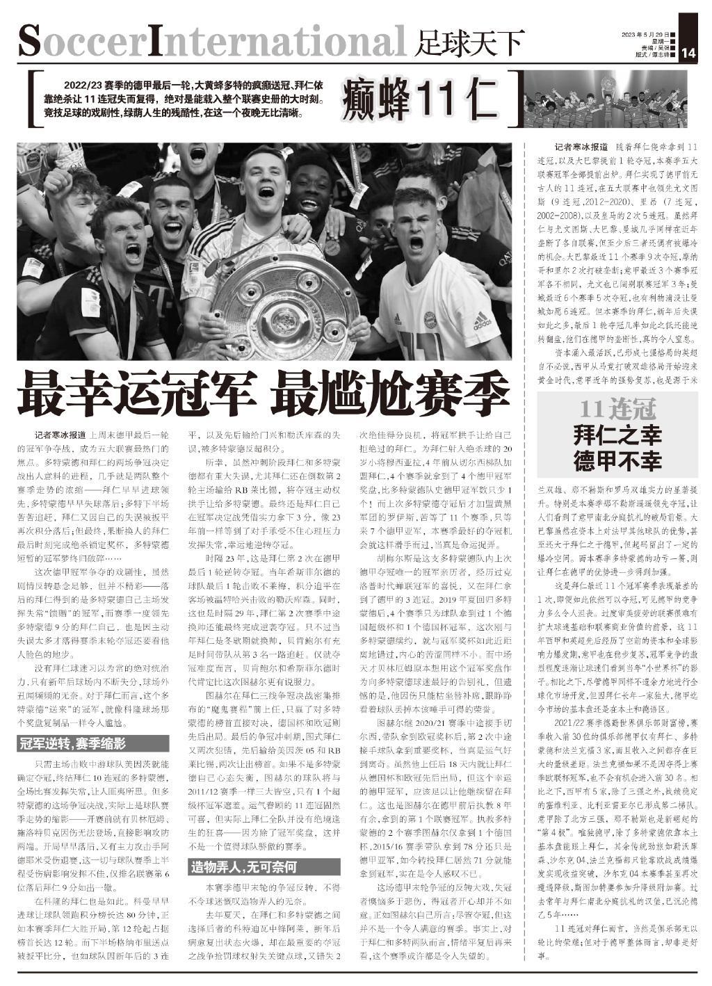 【癲蜂11仁】2022/23賽季的德甲最後一輪,大黃蜂多特的瘋癲送冠、拜仁依靠絕殺讓11連冠失而復得,絕對是能載入整個聯賽史冊的大時刻。競技足球的戲劇性,綠蔭人生的殘酷性,在這一個夜晚無比清晰。