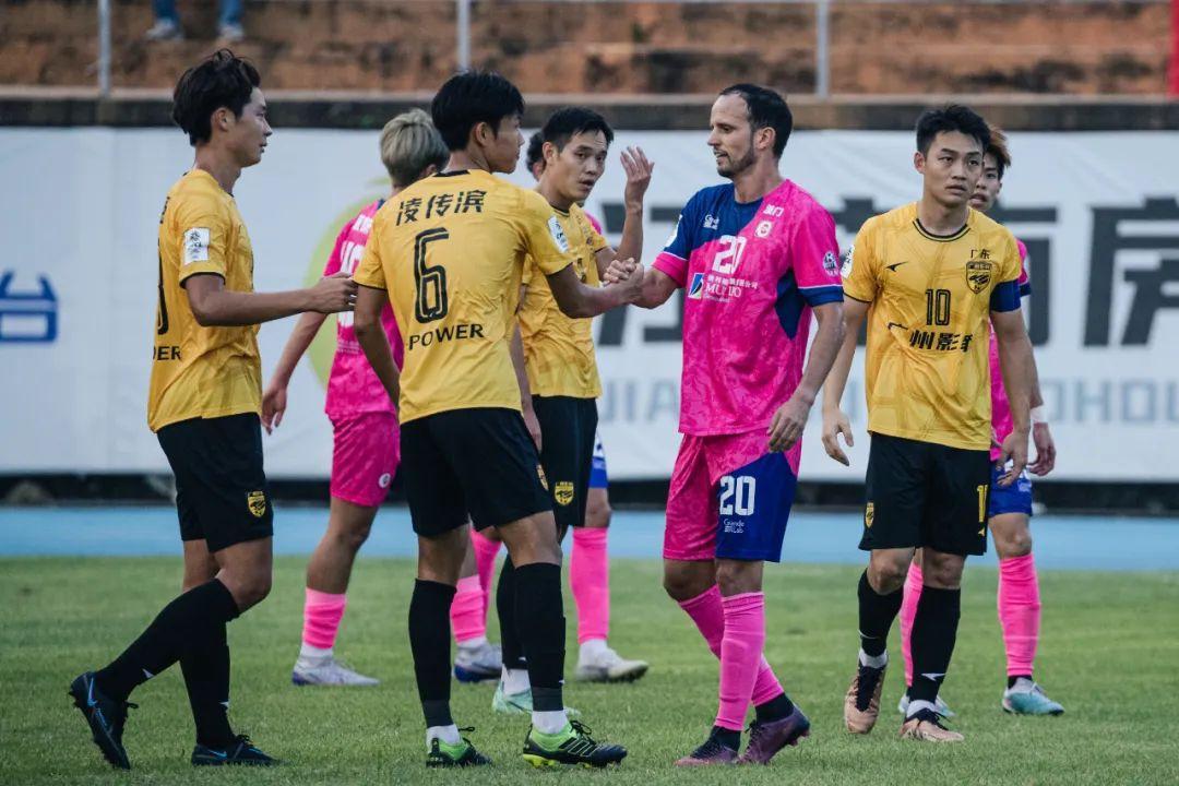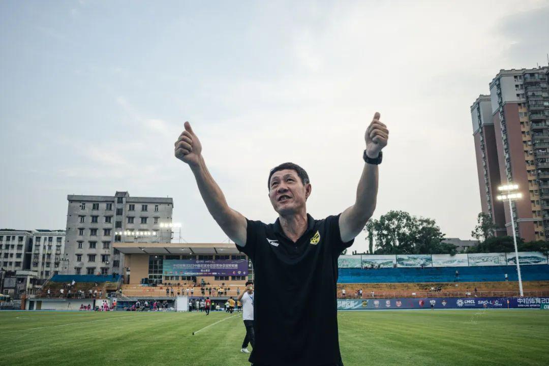 記者王偉三水報道 5月31日下午,2023中冠聯賽廣佛賽區K、L組排位賽第二輪廣州影豹與澳科鄒北記的比賽在廣東佛山三水人民體育場進行。憑藉隊長梁學銘的梅開二度以及肖智和魏渝人的進球,廣州影豹以4比2逆轉拿下比賽,以五戰全勝賽區第一的戰績晉級中冠16強總決賽。比賽結束後,現場球迷高喊廣州影豹隊主教練黎兵的名字,聽到球迷的聲音之後,黎兵穿越球場來到場邊感謝球迷的支持。