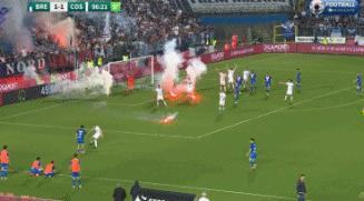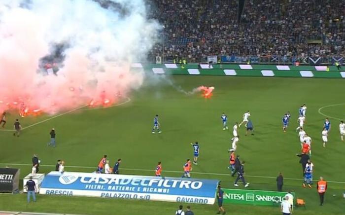 在比賽最後還剩下一分鐘的時候,佈雷西亞球迷開始鬧事,球場裏瞬間下起了煙霧彈雨,還有不少球迷衝進了球場內。主裁判不得不吹哨示意雙方先回球員通道。在球員通道出口處,佈雷西亞右後衛卡拉契奇和科森扎中衛裏喬內幹架,被主裁判直接紅牌罰下。半小時後,工作人員清理完球場後,雙方試圖重新開始比賽。