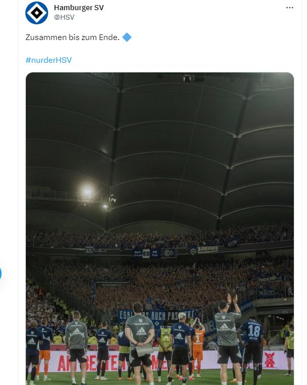 直到上個賽季,漢堡在最後衝刺階段打出一波4連勝,終於拿到了聯賽第3,獲得一個升級附加賽資格。他們在首回合客場1-0擊敗柏林赫塔的情況下,在次回合主場被柏林赫塔2-0反殺,最終以總比分1-2落敗無緣升級。