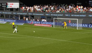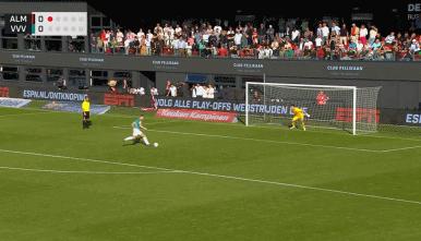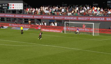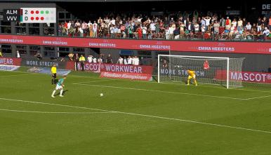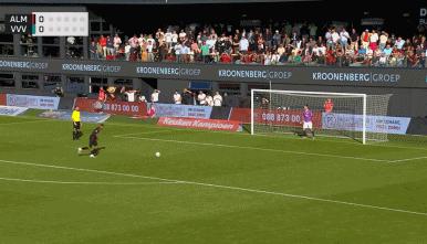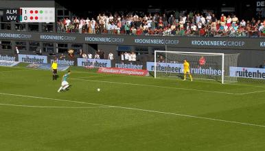 第三輪,杜維斯泰恩打破場上僵局,科格林又是打門將的左手邊再次被撲出,阿爾梅勒城1-0領先。