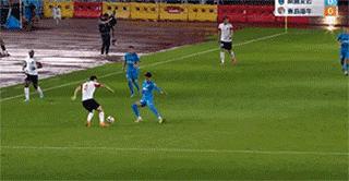 比賽第92分鐘,青島海牛在由攻轉守過程中出現了問題,從後場插上的汪嵩無人看防,讓海牛無奈的是,汪嵩在禁區前的遠射雖然角度不錯,但力量並不大,牟鵬飛完全可以做出有效撲救,但牟鵬飛在做出撲救動作時支撐腳不慎打滑,在這種情況下,只能眼睜睜地看着皮球飛入網窩。