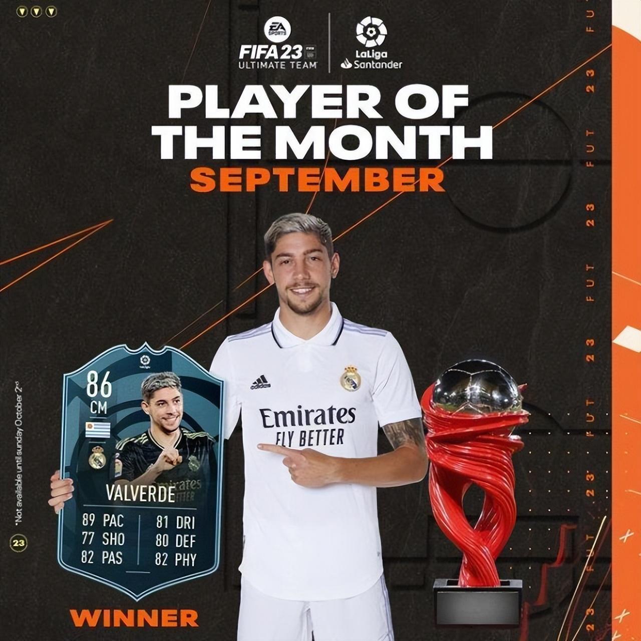 北京時間9月30日,西甲官方:皇馬中場巴爾韋德當選西甲九月最佳球員。巴爾韋德幫助皇馬在9月份的3場西甲比賽中取得了全勝的戰績,他自己打入2球,並有1個助攻。