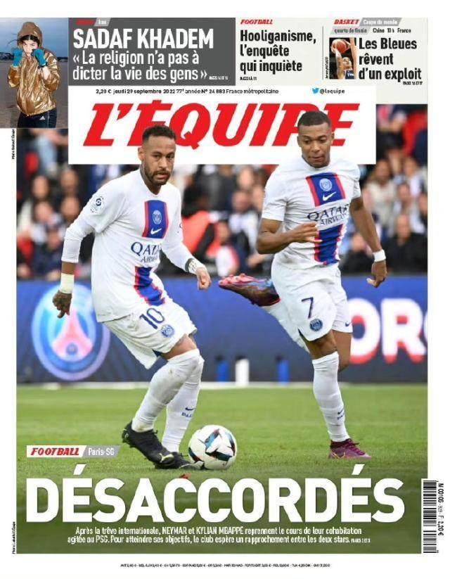 《隊報》報道,內馬爾和姆巴佩之間沒有完全和解,他們只是爲了世界盃保持着表面和平。爲緩和二人之間的矛盾,馬爾基尼奧斯和拉莫斯等更衣室大佬們進行了干預。梅西也在二人之間進行了調解,他甚至向俱樂部傳達了這樣一個信息:必須要解決球隊內部的這種分歧,因爲這種分歧會讓巴黎本賽季走向一個糟糕的境地。