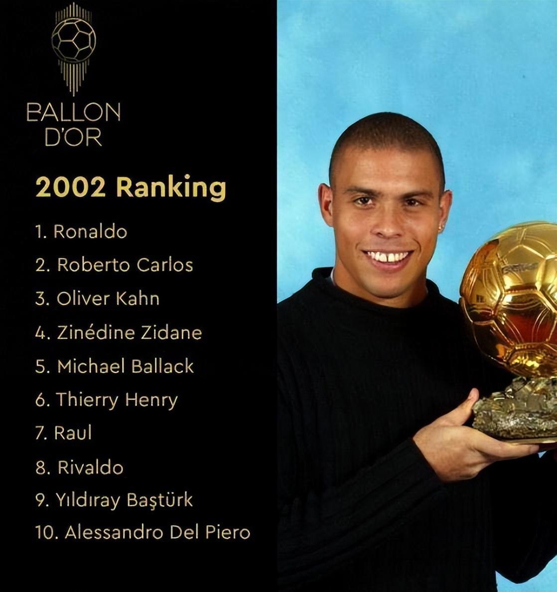 2002年金球獎前十:羅納爾多當選卡洛斯次席,齊達內、亨利在列
