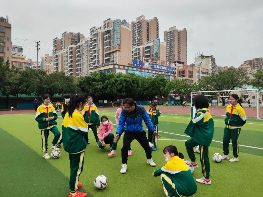 張監海很認可敏哥的敬業精神:“通常說,足球專業性很強的教練確實厲害,但在校園足球裏,沒有敬業精神是沒用的。”七小人在足球上的專注也得到了回報。英德市校足辦剛成立時,決定聯合足協在內的多部門共同打造從低到高的培英體系。第一批由英德足協統籌安排的專業教練到校指導項目就放在了七小,陳玉良等足球名宿進駐學校,上場帶領孩子們玩足球遊戲,多方促進七小的校園足球發展。“足球資源是有限的,七小在認真做校園足球,資源就可以向他們傾斜一點,這樣才能夠把資源最大化利用。所以,七小能夠走得這麼快,這麼好。”鍾純林說。