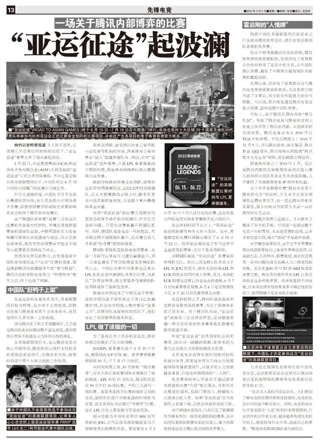 簡單點理解,就是騰訊電競主要承擔與亞組委等機構的對接,騰競體育主要負責去“搖人”組建參賽隊伍。因此,針對“亞運征途”這種賽事,正值LPL夏季賽激戰正酣的時候,騰競體育的確難以派出最強戰力去參賽。