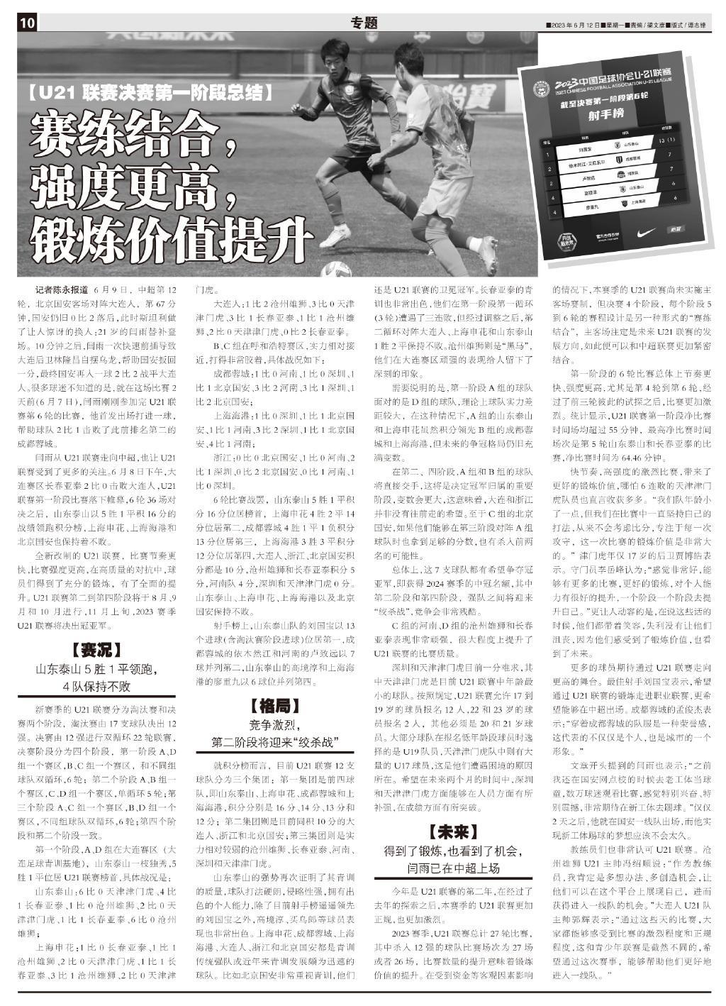 全新改制的U21聯賽,比賽節奏更快,比賽強度更高,在高質量的對抗中,球員們得到了充分的鍛鍊,有了全面的提升。U21聯賽第二到第四階段將於8月、9月和10月進行,11月上旬,2023賽季U21聯賽將決出冠亞軍。