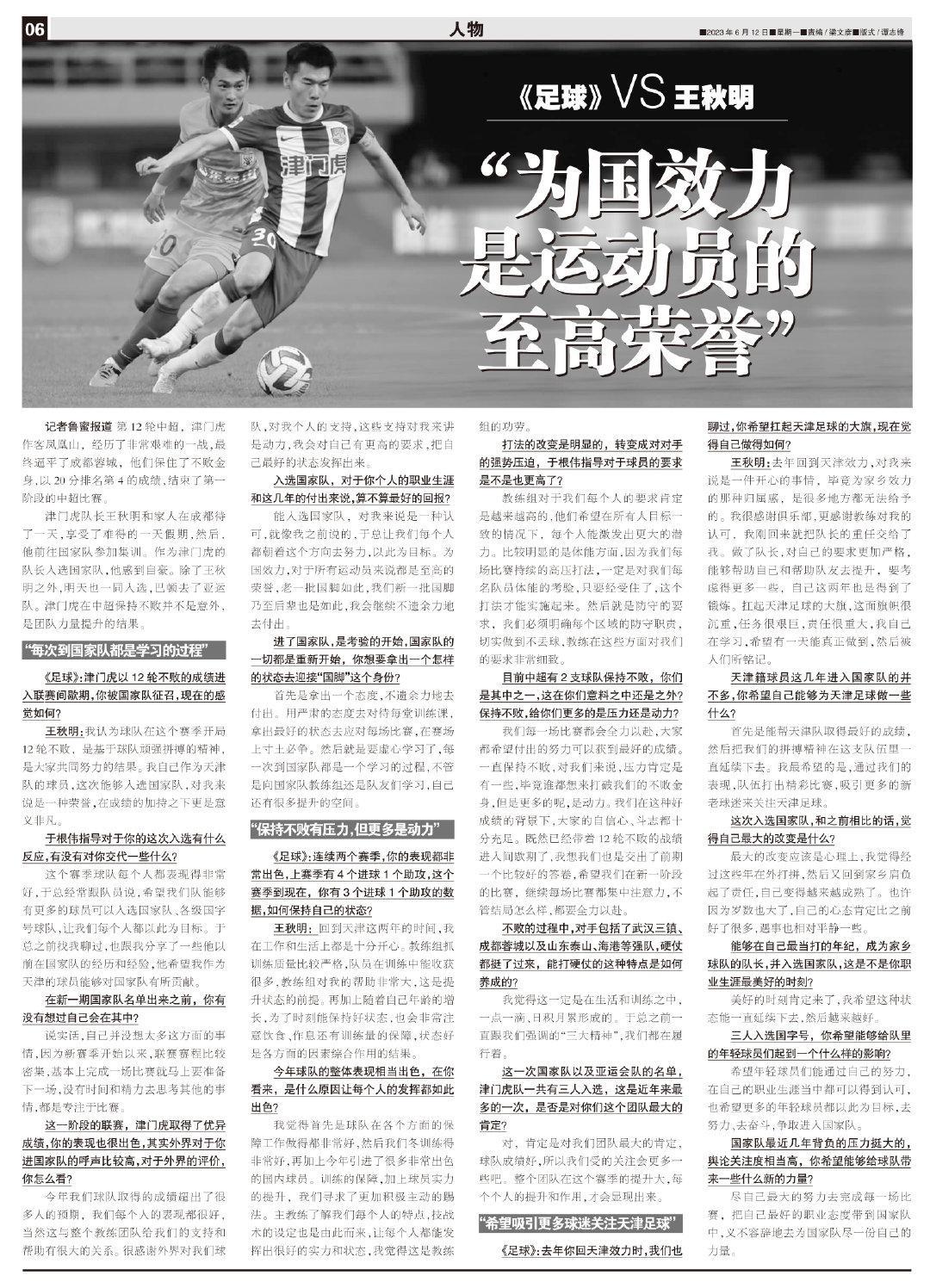 王秋明:我認爲球隊在這個賽季開局12輪不敗,是基於球隊頑強拼搏的精神,是大家共同努力的結果。我自己作爲天津隊的球員,這次能夠入選國家隊,對我來說是一種榮譽,在成績的加持之下更是意義非凡。