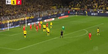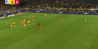 不過拜仁球員把球解圍出去後,皮球在外圍還是被多特控制下來。最後阿德米耶一記挑傳,施洛特貝克把球救回來後,在底線轉身傳中,助攻莫德斯特頭球壓哨絕平。