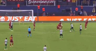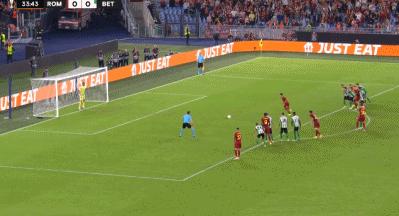 第34分鐘,迪巴拉主罰點球命中,羅馬取得1-0領先。
