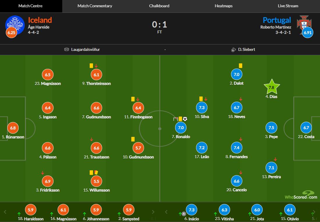 全場結束,最終葡萄牙1-0擊敗冰島。