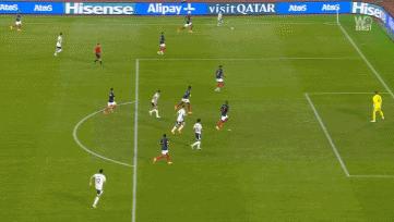 第二個爭議是法國隊打進的第二個進球前,爲巴爾科拉送出助攻的古伊裏,跟奧科利爭二分之一球時是否存在蹬踏犯規的可能。但也是因爲沒有VAR,在事發地點較近的主裁判第一時間沒有吹罰,進球后也不能改判了。