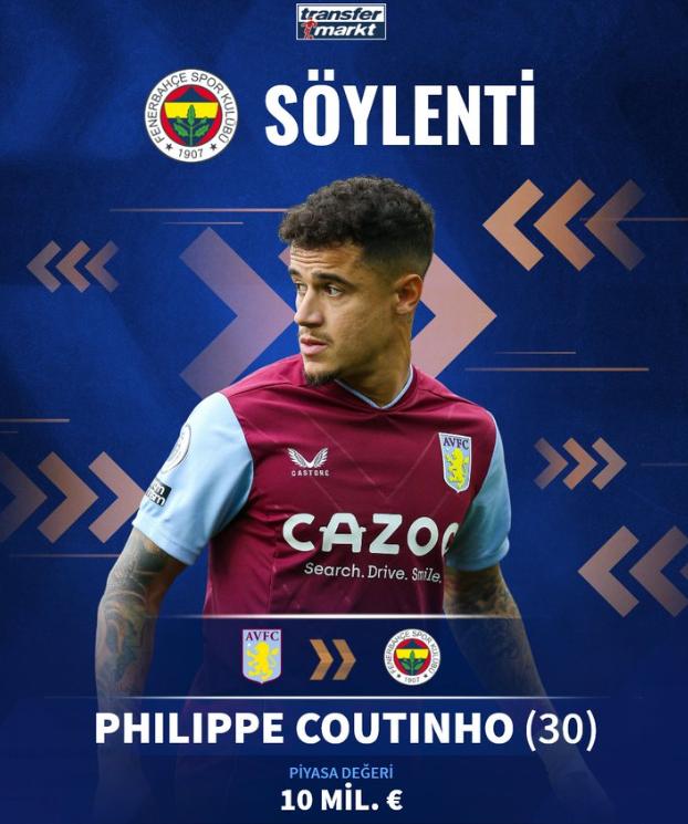 土耳其媒體Fotomaç報道稱,剛度過31歲生日的庫蒂尼奧,已經被經紀人推薦給費內巴切,而後者也願意爲球員提供一份兩年的合同。