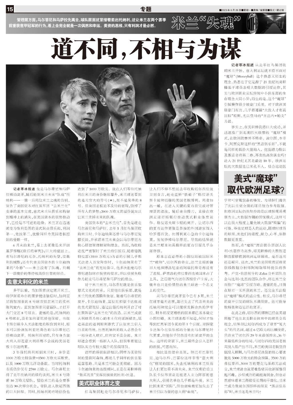 【米蘭失魂】管理層方面,馬爾蒂尼和馬薩拉先離去,球隊層面就緊接着賣出託納利,這讓米蘭在兩個賽季前重獲意甲冠軍的行爲,看上去完全就是一次偶然和幸運。美資的思維,只有利潤纔是必然。