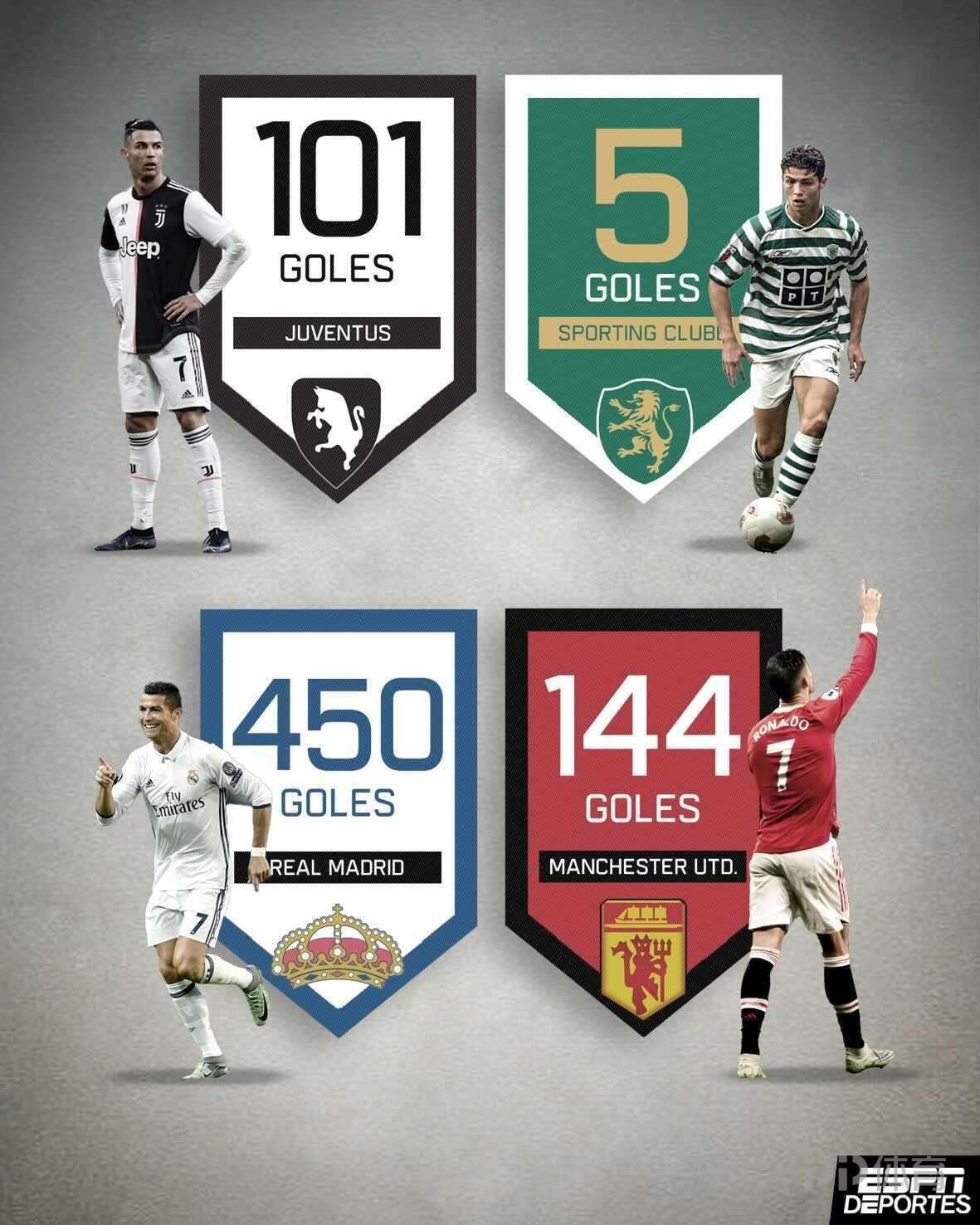 C羅俱樂部生涯進球分佈: