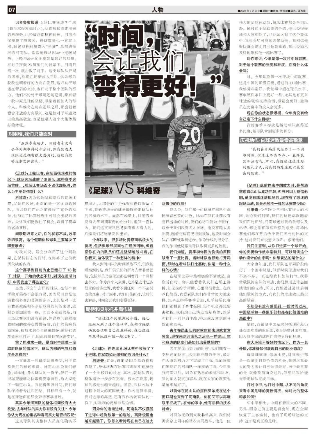 去年在崑山效力的時候,我們擁有一支出色的隊伍,承擔着衝超的任務,最後在大家的努力之下完成了目標,我的同事們像現在的河南隊一樣接納了我,今年來到河南以後,因爲有熟悉的教練和隊友,我的融入就更加容易,現在大家的默契也是越來越好了。