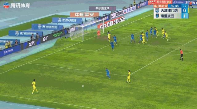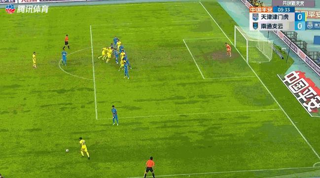 第9分鐘,楊帆利用前場任意球機會,頭球攻破了南通支雲的球門。遺憾的是,這個進球被裁判認爲貝里奇在越位干擾門將,被吹無效。不過,津門虎對對手防線造成的巨大壓力是顯而易見的,且球員並沒有受到這個進球被吹的影響,求勝的慾望非常明顯。