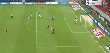 補時第5分鐘,呂文君左路傳中,李聖龍頭槌破門,上海海港扳平1-1。