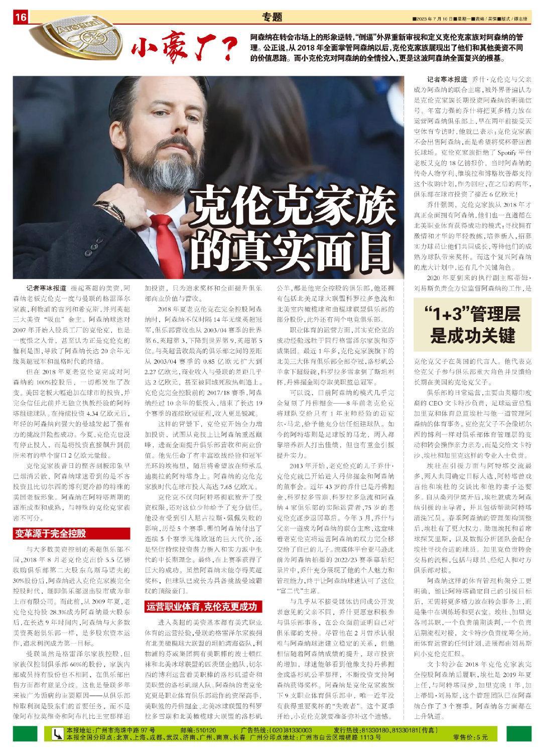 記者寒冰報道 提起英超的美資,阿森納老闆克倫克一度與曼聯的格雷澤爾家族,利物浦的吉列和希克斯,並列英超三大美資“吸血”金主。阿森納球迷對2007年開始入股兵工廠的克倫克,也是一度恨之入骨,甚至認爲正是克倫克的惟利是圖,導致了阿森納長達20餘年無緣英超冠軍和溫格時代的終結。