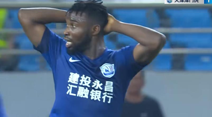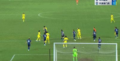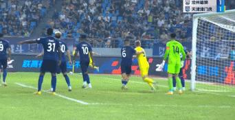 第7分鐘, 趙英傑左路角球傳中,羅薩頭球破門,天津津門虎扳平1-1。
