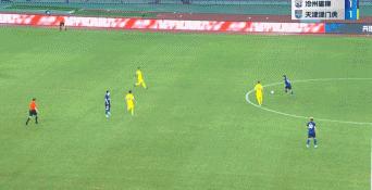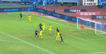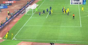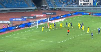 第4分鐘,王鵬左腳傳中,奧斯卡魚躍衝頂破門,滄州雄獅1-0領先。