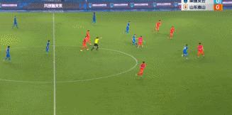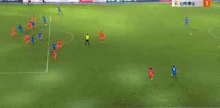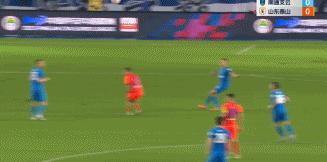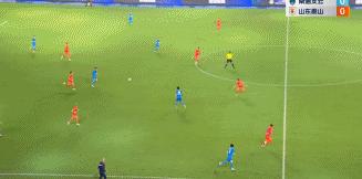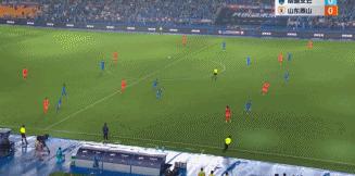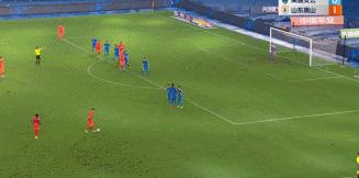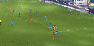 第82分鐘,山東泰山戰術定位球,莫伊塞斯橫向一撥,費南多禁區外圍起腳打門,皮球偏出球門左側。