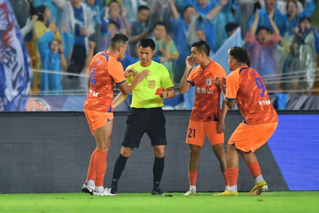 此外,主裁判李海新第一時間判罰賈德松黃牌,隨後VAR介入之後,李海新堅持了判罰,但VAR又一次介入以後,李海新卻又選擇了去場邊親自觀看視頻回放,最終更改爲紅牌,由此很多泰山球迷也對這次VAR程序提出了質疑。