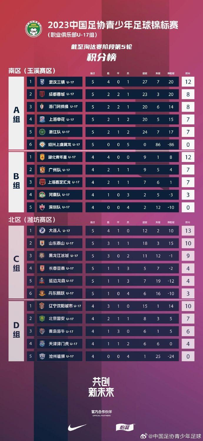 需要說明的是,此次U17聯賽賽程和學青會十五十六歲年齡段組足球比賽衝突,大部分球隊在參加U17聯賽的時候並非主力陣容,浙江隊被淘汰算是一個意外,他們是2022年第一屆中青賽U17組冠軍(2005年齡段)。