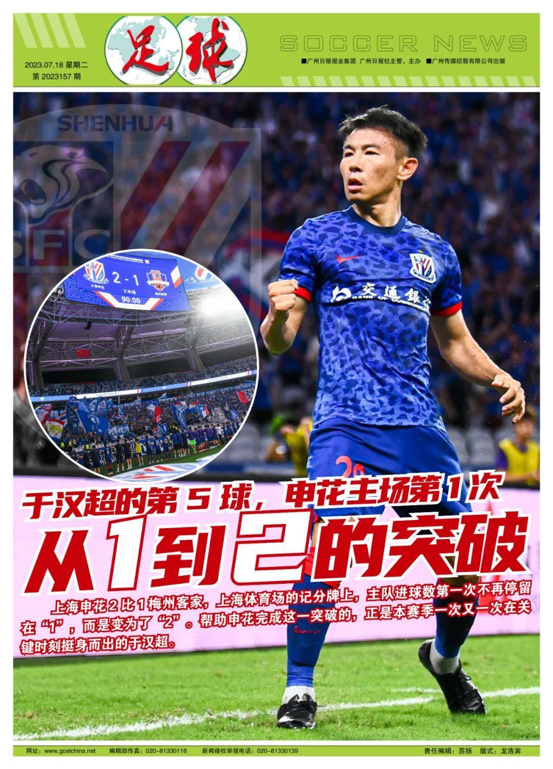 本輪比賽前的16場比賽,申花僅在客場對陣深圳的比賽中打入過3球,其他比賽最多進一球。也就是說,申花主場的記分牌,本賽季還沒有出現過2或者以上的數字。昨晚,于漢超終於幫球隊捅破了這層窗戶紙。