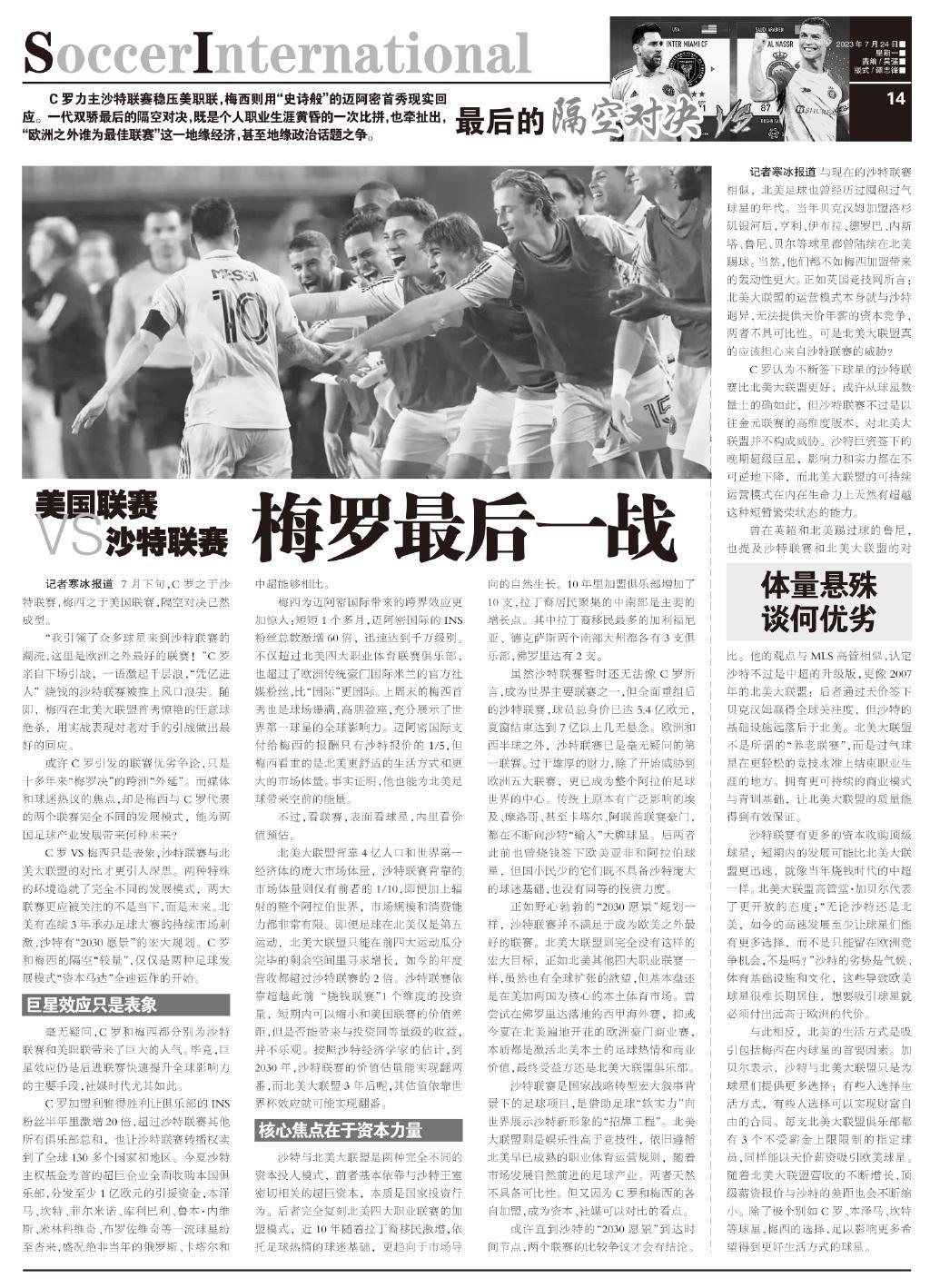 記者寒冰報道 7月下旬,C羅之於沙特聯賽,梅西之於美國聯賽,隔空對決已然成型。