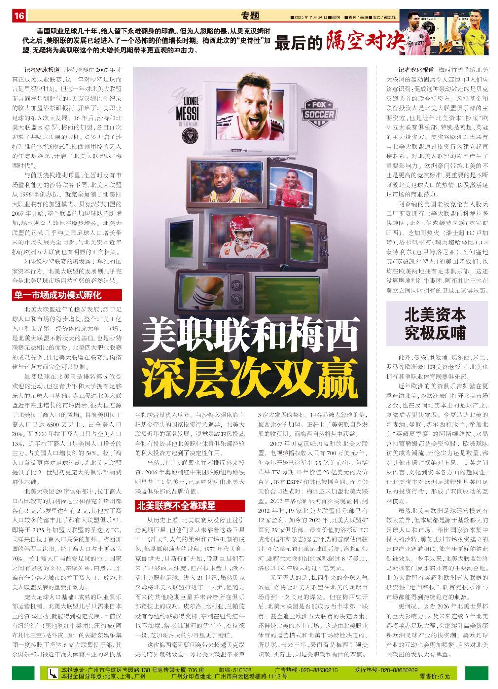 記者寒冰報道 沙特聯賽在2007年才真正成爲職業聯賽,這一年對沙特足球而言是里程碑時刻。但這一年對北美大聯盟而言同樣是劃時代的:貝克漢姆以創紀錄的收入加盟洛杉磯銀河,開啓了北美職業足球的第3次大發展。16年後,沙特和北美大聯盟因C羅、梅西的加盟,各自再次迎來了井噴式發展的契機。C羅開啓了沙特升維的“燒錢模式”,梅西則用驚爲天人的任意球絕殺,開啓了北美大聯盟的“梅西時代”。