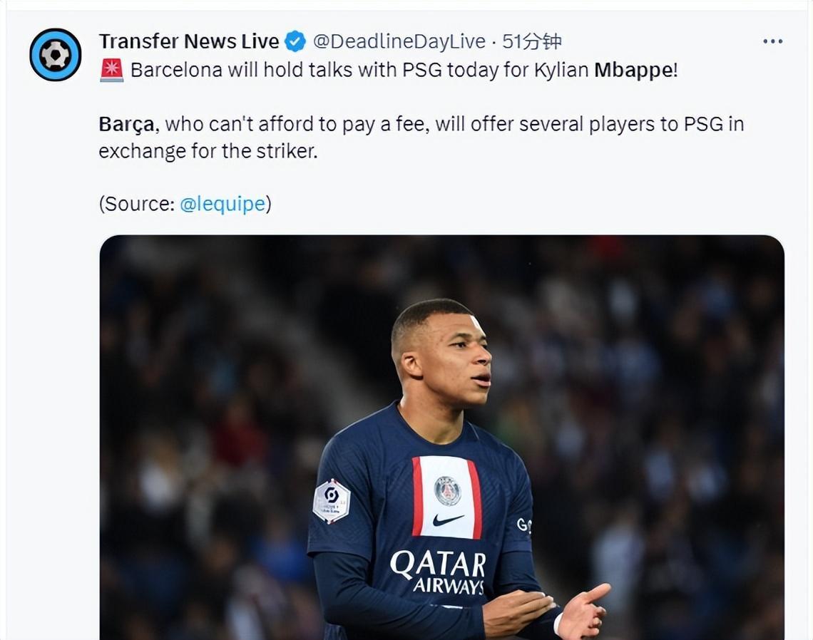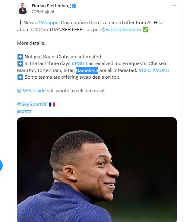 與此同時,天空體育記者Florian Plettenberg也確認巴薩確實對姆巴佩很感興趣。不過Javi Miguel和Gerard Romero兩位記者均認爲巴薩不可能引進姆巴佩。
