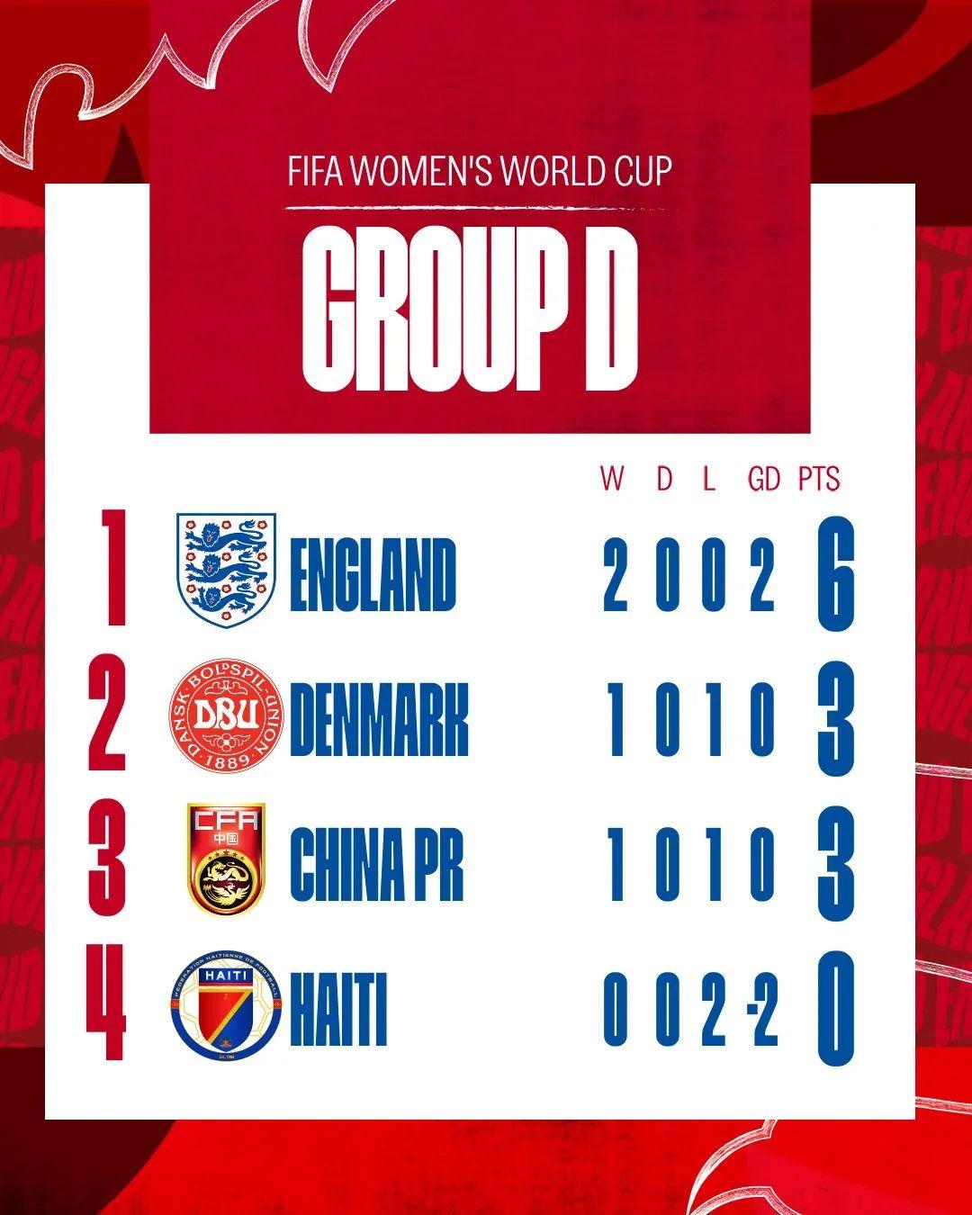 兩連勝後,英格蘭出線在望,但也不敢大意,對中國隊的比賽,她們需要至少拿到1分,才能徹底鎖定出線權。