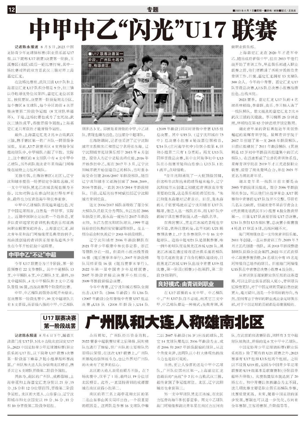 最終,上海嘉定匯龍2比0擊敗武漢三鎮,攜手賽區第一的廣州隊一同晉級爭冠組。至此,U17聯賽南區4支晉級爭冠組的球隊中,中甲梯隊佔據了半數。實際上,這個賽區的8支球隊中有4支中甲中乙球隊,另外兩隊湖北青年星和海門珂締緣在戰績上力壓河南隊。