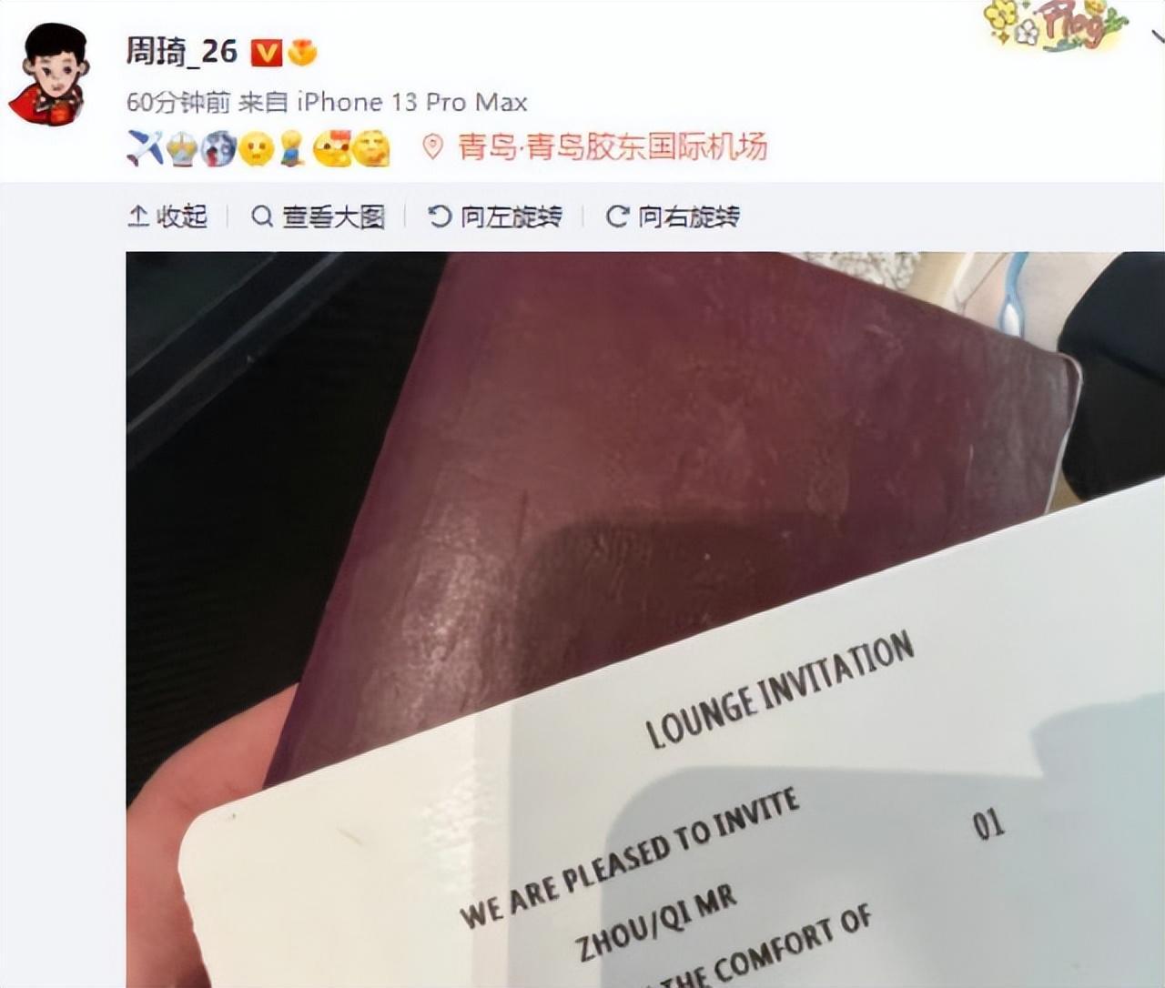 周琦曬照出發前往澳洲