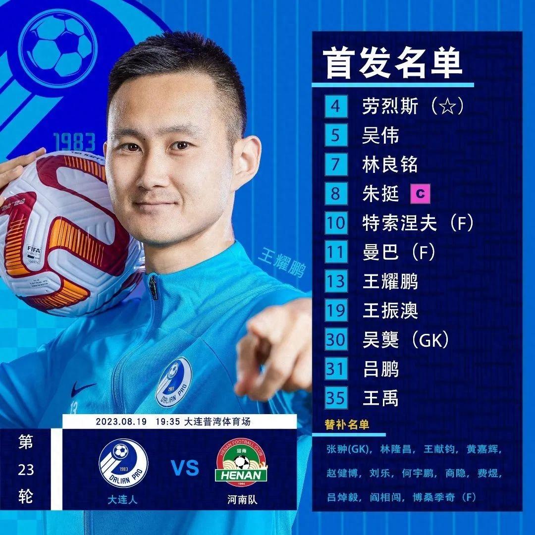 與上輪比賽首發相比,大連人繼續以433應對河南隊的4141,王耀鵬和解禁復出的曼巴頂替腳傷尚未完全痊癒的王獻鈞以及紅牌停賽的曼佐基。