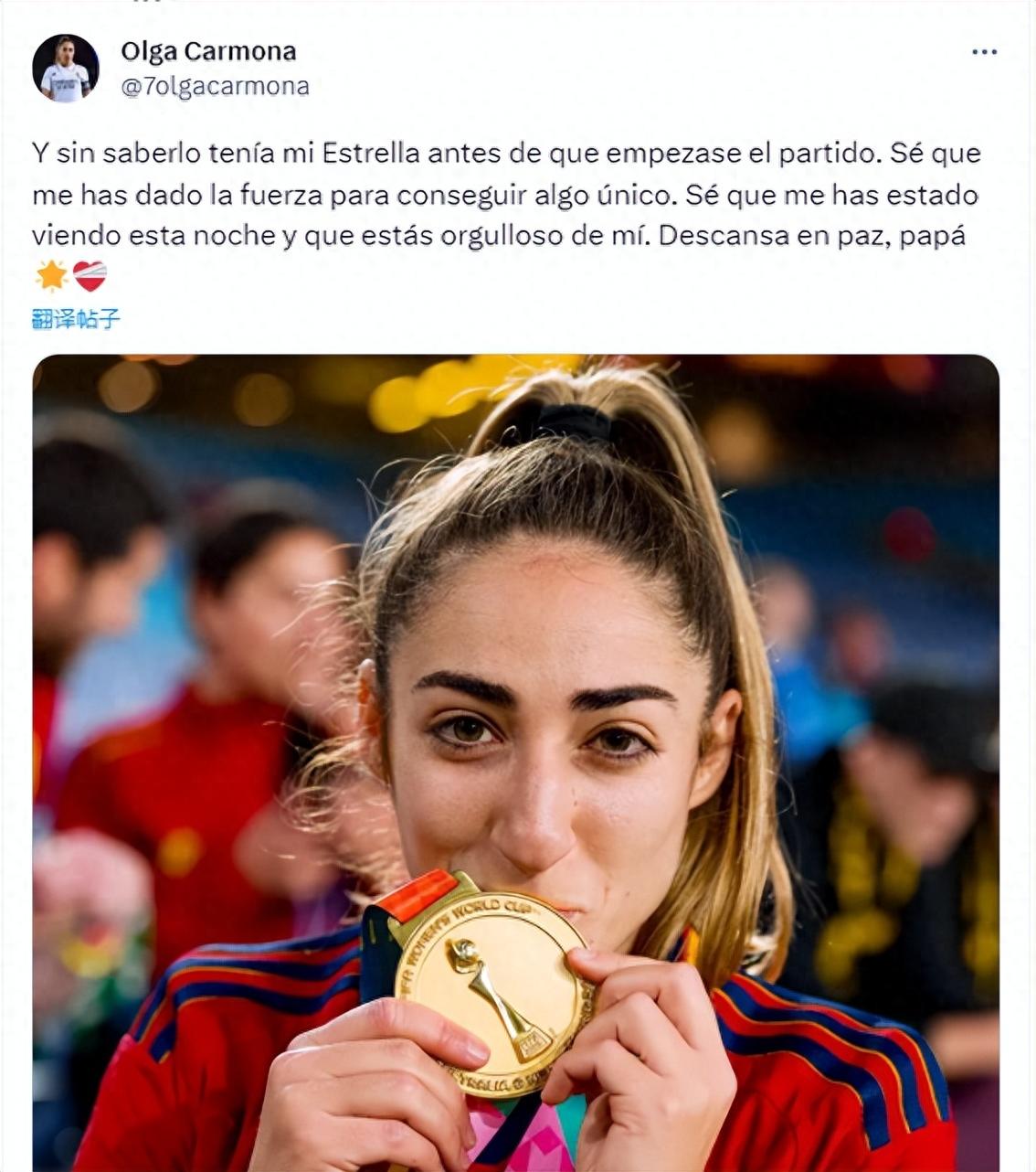 然而,命運的轉折點卻在賽後的勝利與榮譽之後才揭開。在那個距離奪冠僅僅11小時的時刻,卡蒙娜得知了父親的去世。她在社交媒體上的留言,透露了她內心的震撼和感慨。在冠軍的光環下,她發現自己在比賽開始前就已經得到了她父親的守護,父親去世後已成爲了那顆遙不可及的星星,賜予她實現特別目標的力量。她相信,她的父親一直在注視着她,爲她感到驕傲。