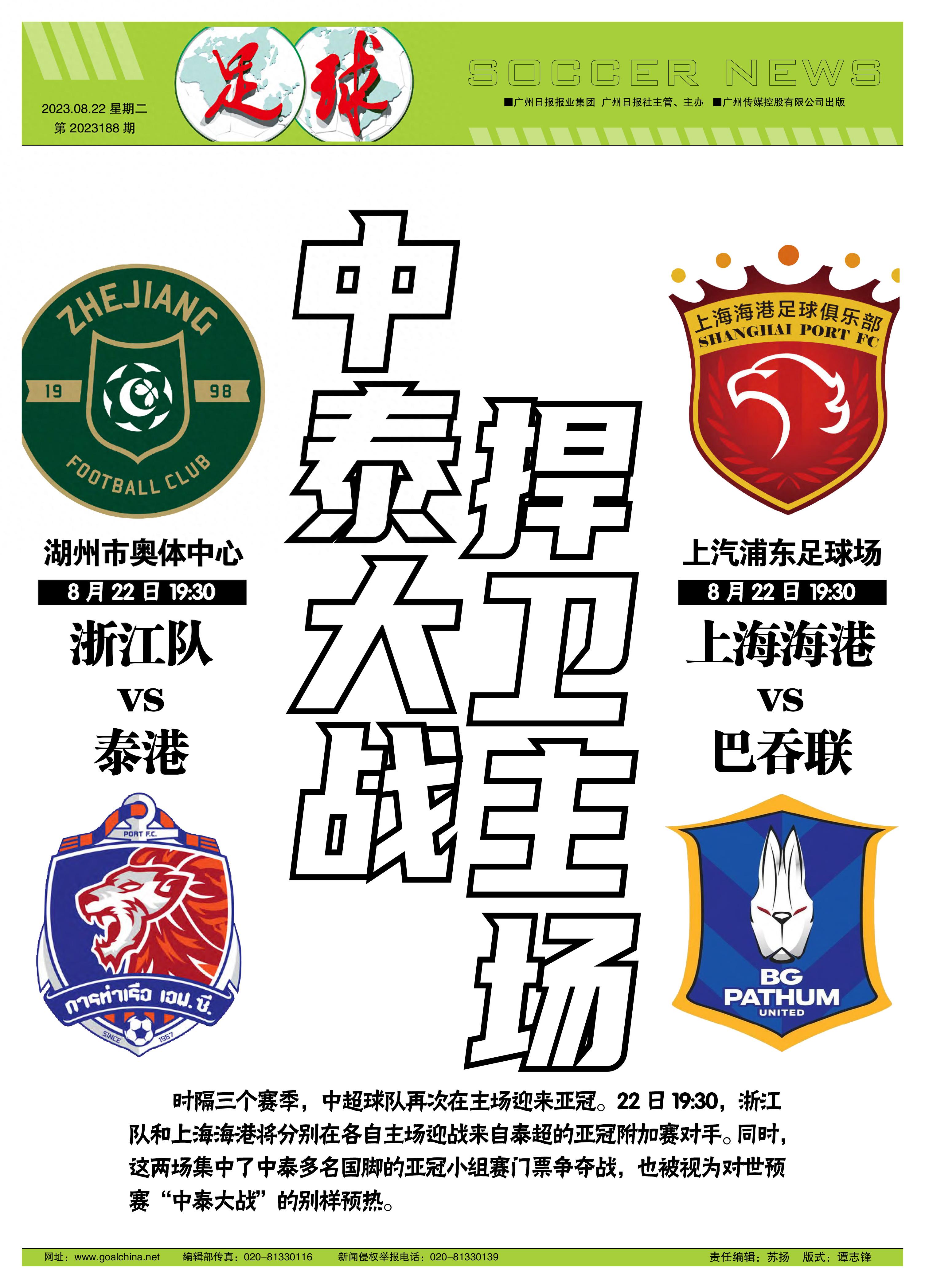 記者程善、特約記者徐毅報道 時隔三個賽季,中超球隊再次在主場迎來亞冠。22日19:30,浙江隊和上海海港將分別在各自主場迎戰來自泰超的亞冠附加賽對手。同時,這兩場集中了中泰多名國腳的亞冠小組賽門票爭奪戰,也被視爲對世預賽“中泰大戰”的別樣預熱。