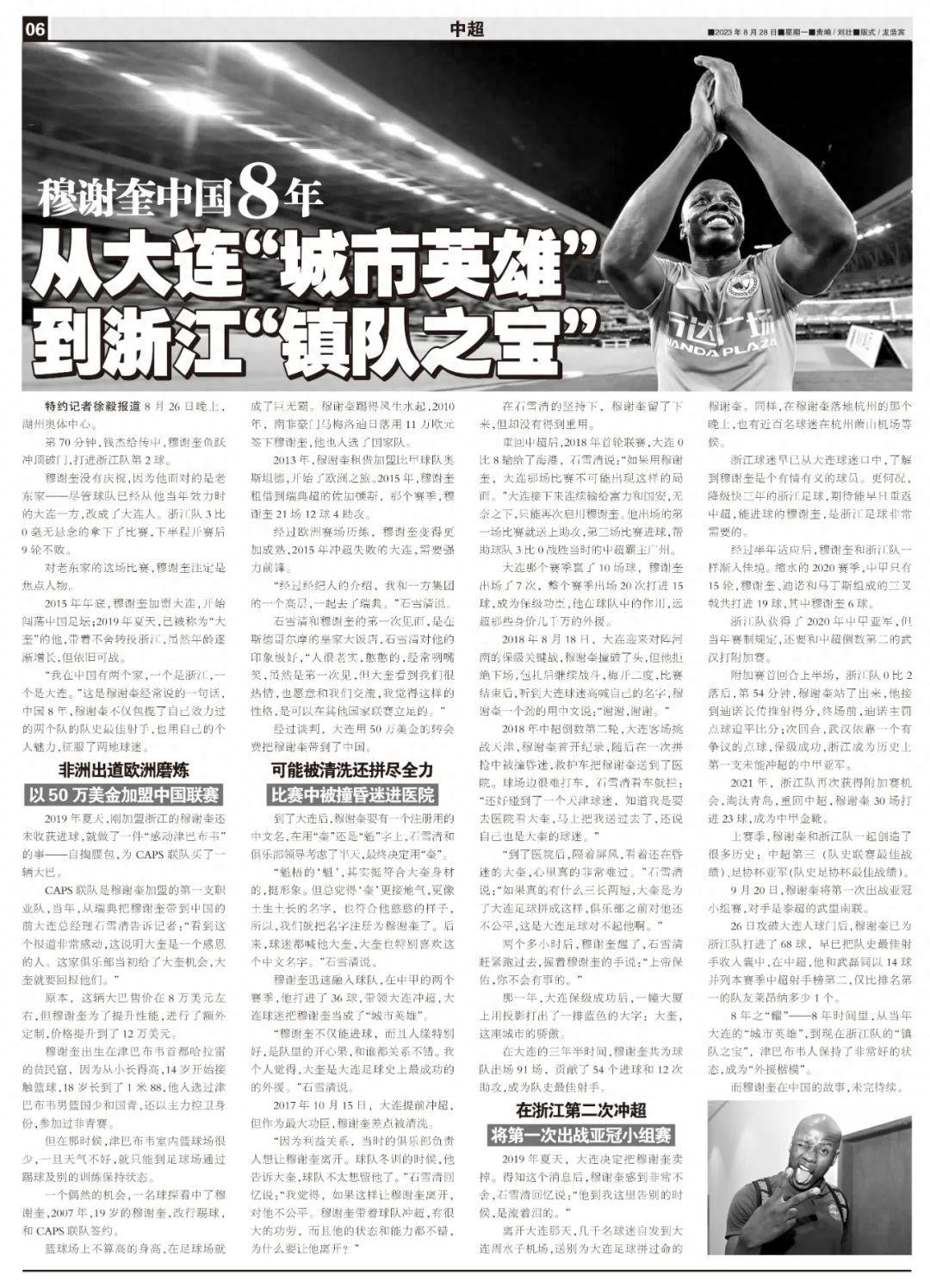 “我在中國有兩個家,一個是浙江,一個是大連。”這是穆謝奎經常說的一句話,中國8年,穆謝奎不僅包攬了自己效力過的兩個隊的隊史最佳射手,也用自己的個人魅力,征服了兩地球迷。