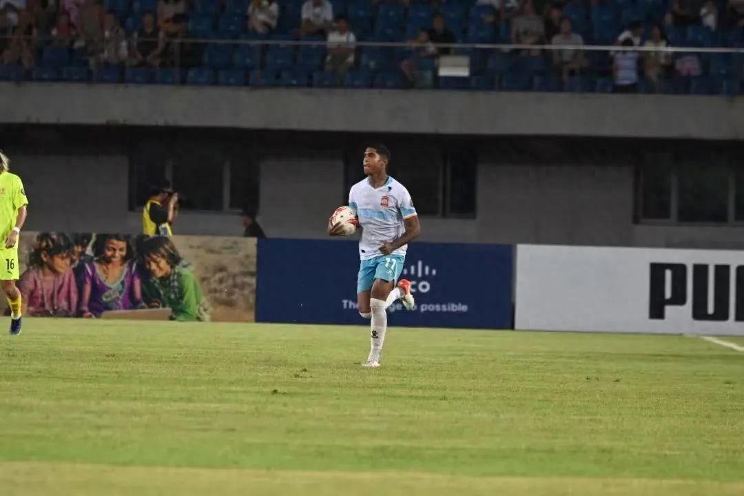 本場比賽上半場發生了一件非常有趣的事,主場作戰的四川九牛率先發力,第34分鐘外援奧爾蒂斯的一腳遠角兜射攻進本場比賽第一粒進球。進球過程中皮球飛進球門後又打穿了球網,主裁判麥麥提江花了一點時間確認進球有效。憑藉着這一粒進球,四川九牛上半場以1比0領先。