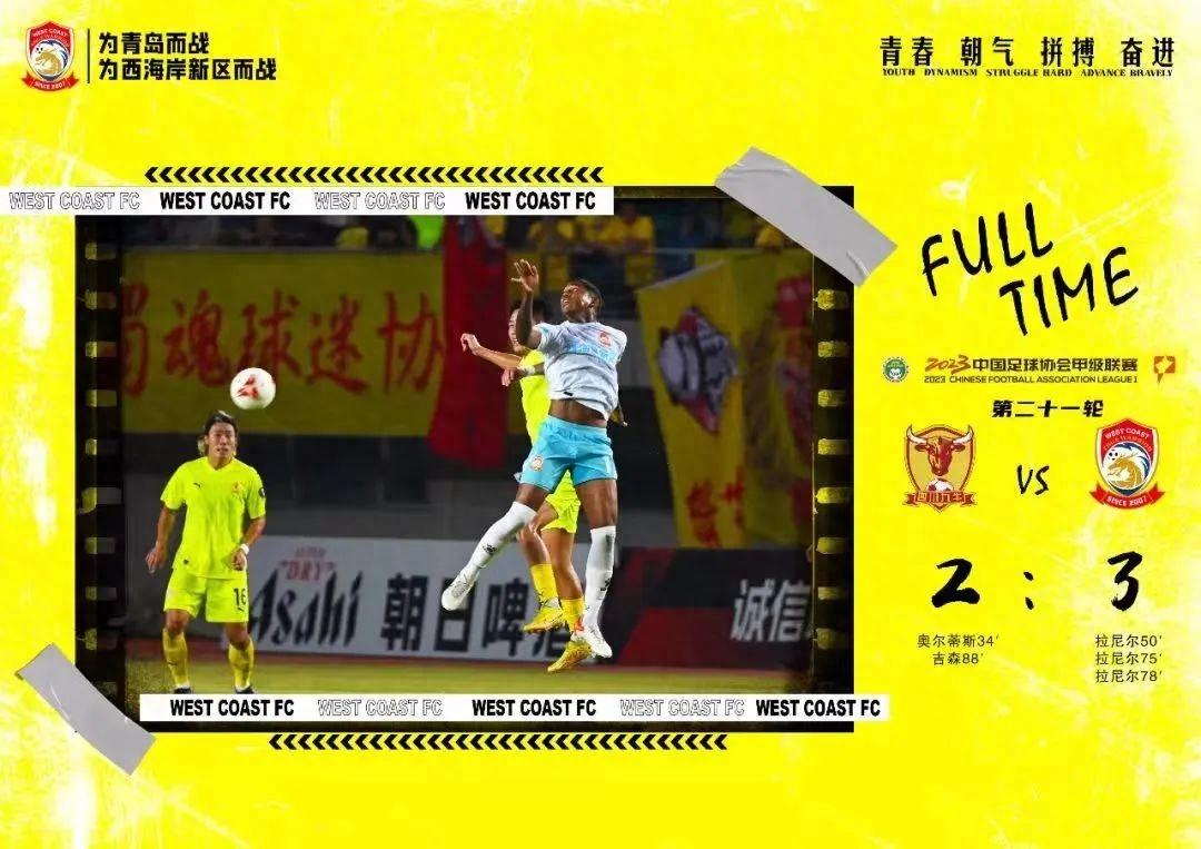 記者王偉報道 9月2日晚,2023賽季中甲聯賽第21輪上演了一場爭奪聯賽榜首的大戰,最終青島西海岸隊在客場以3比2逆轉戰勝四川九牛,取得客場勝利的青島西海岸隊積分達到43分,再度登頂積分榜。