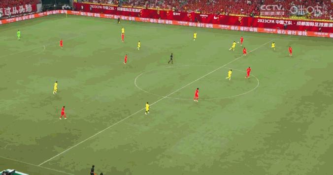 下半場,國足不斷進行人員調換,包括謝鵬飛替下林良銘,雙後腰更換爲徐新和王上源。隨着一系列調整,以及對手體能的下降,算是也打出了一些攻勢。
