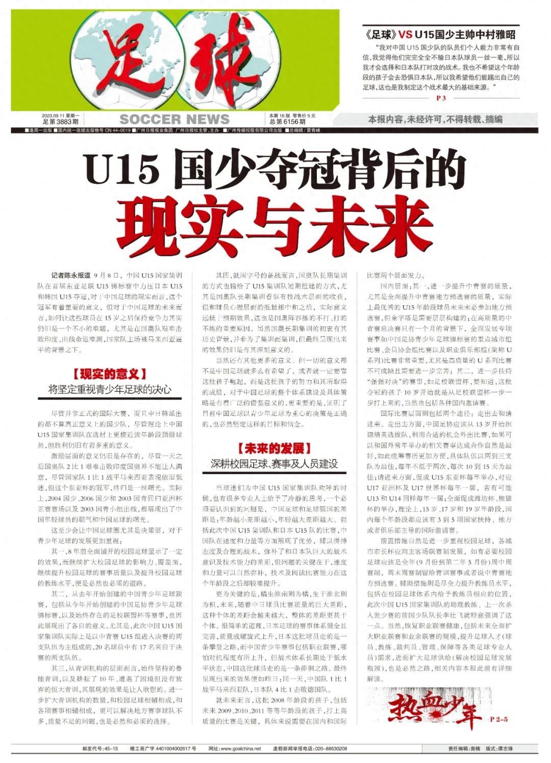 前置措施自然是進一步重視校園足球,各城市市長盃應向主客場聯賽制發展,如有必要校園足球應該是全年(9月份到第二年5月份)週中周賽制,週末周賽制留給青訓賽事或者說中青賽地方預選賽。輔助措施則是盡全力提升教練員水平,包括在校園足球體系內給予教練員相應的位置,此次中國U15國家集訓隊的助理教練、上一次殺入世少賽的前國少隊隊長李壯飛就特意強調了這一點。當然,恢復職業聯賽健康,包括未來全面擴大職業聯賽和業餘聯賽的規模,提升足球人才(球員、教練、裁判員、管理、保障等各類足球專業人員)需求,進而擴大足球供給(解決校園足球發展瓶頸),也是必然之路,相關內容本報此前有詳細解讀。