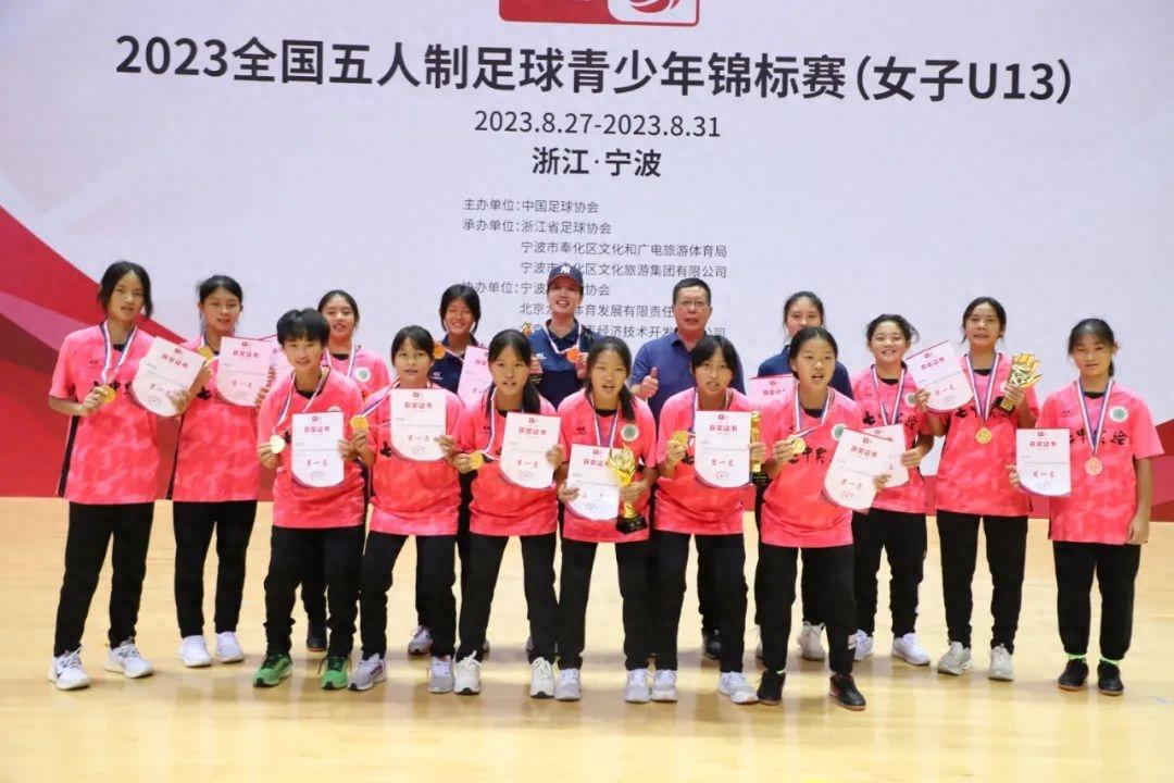 8月31日,在浙江寧波奉化舉行的2023全國五人制足球青少年錦標賽(女子U13)組別冠軍爭奪戰中,廣州市第七中學實驗學校女足6比0戰勝湖北宜昌盛傑女足,奪得該校女足隊伍第一個全國足球冠軍。參加七中實驗學校開學典禮的廣州市越秀區政協副主席、越秀區教育局黨組書記、局長鄒衛紅爲女足隊員頒獎。