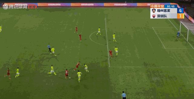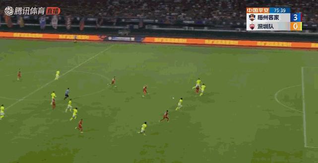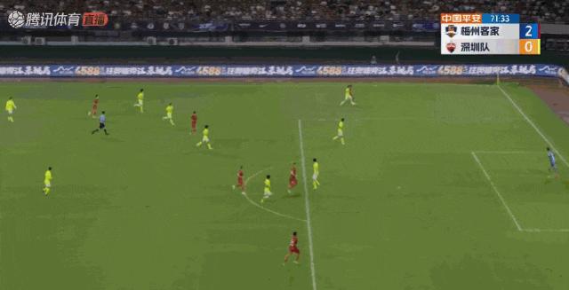 在三名外援缺陣的情況下,向君只能派出以年輕隊員爲主的首發球員,老將張遠擔任場上隊長。相比之下,梅州客家隊首發派上了科索維奇、康拉德、杜加利奇、羅德里格四名外援首發,全主力出戰的梅州客家實力明顯高出一籌。上半場,羅德里格和康拉德就各進一球,建立起2比0的領先優勢。下半場,替補出場的科特尼克以及葉楚貴也陸續完成破門。第82分鐘,沈子貴爲深足打進了挽回顏面的一粒進球。最終,科尼特克梅開二度將比分鎖定爲5比1,深圳隊在客場大比分落敗。
