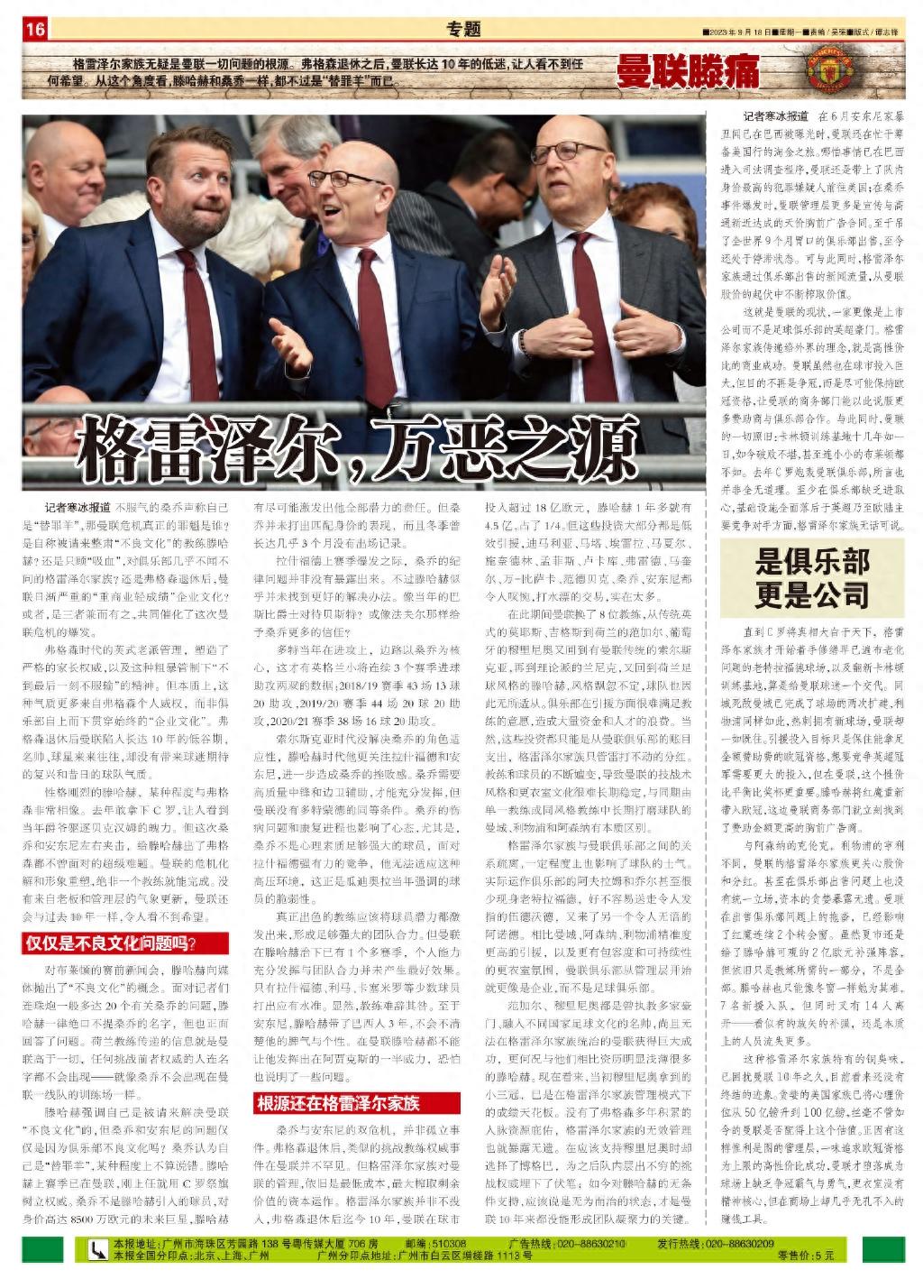 範加爾、穆里尼奧都是曾執教多家豪門、融入不同國家足球文化的名帥,尚且無法在格雷澤爾家族統治的曼聯獲得巨大成功,更何況與他們相比資歷明顯淺薄很多的滕哈赫。現在看來,當初穆里尼奧拿到的小三冠,已是在格雷澤爾家族管理模式下的成績天花板。沒有了弗格森多年積累的人脈資源庇佑,格雷澤爾家族的無效管理也就暴露無遺。在應該支持穆里尼奧時卻選擇了博格巴,爲之後隊內層出不窮的挑戰權威埋下了伏筆;如今對滕哈赫的無條件支持,應該說是無爲而治的狀態,纔是曼聯10年來都沒能形成團隊凝聚力的關鍵。