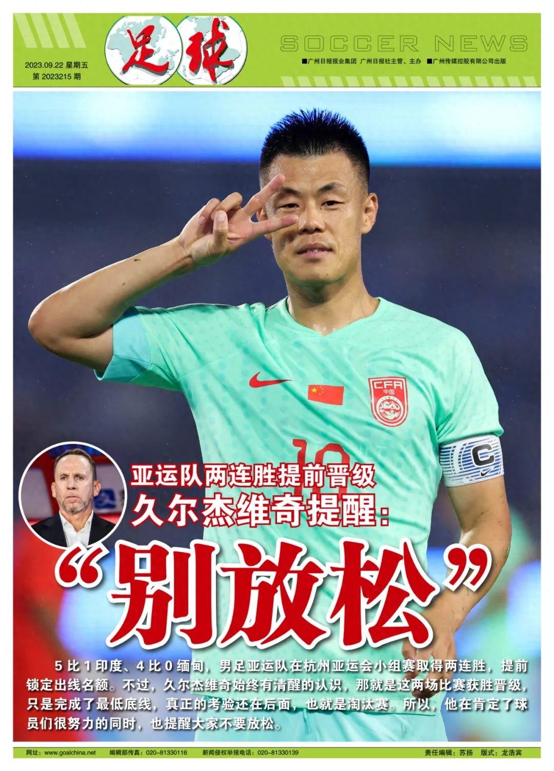 小小細節,既是因爲小組賽賽程相對輕鬆,也是亞運隊上下目前心態積極的一個側寫。而在球隊慶祝出線的同時,久爾傑維奇依舊保持着冷靜,他知道,小組賽的順風順水,並不是評判亞運會成績是否合格的標準。