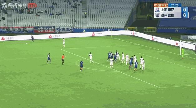 陣容嚴重不整的申花,開場後一點都不保守,還嘗試更多地走地面配合。第26分鐘,申花的進攻收到了效果。申花獲得前場任意球機會,曹贇定主罰。狀態不錯的曹贇定打出了一腳高質量的傳中,馬萊萊高高躍起甩頭得分,幫助申花1比0領先。