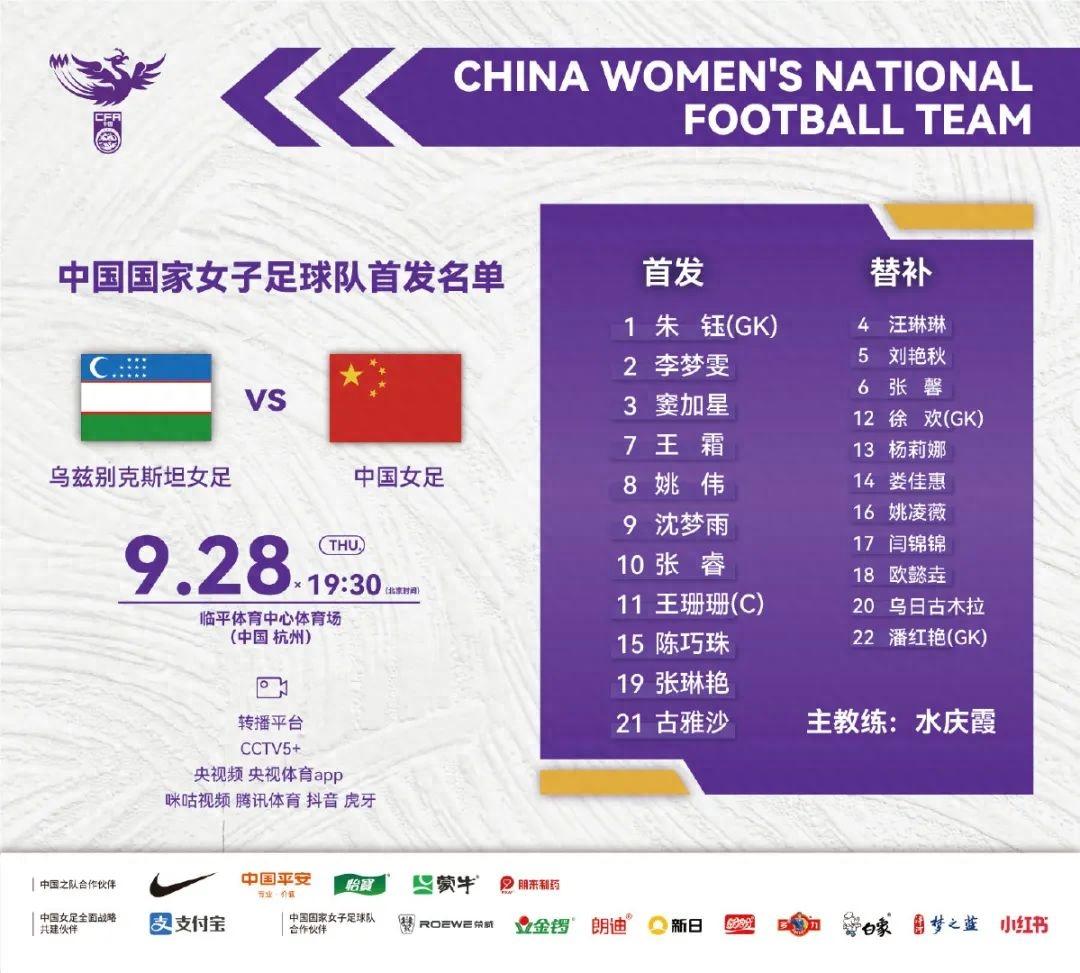 中場方面,老將古雅沙和小將張琳豔分居左右兩邊,張睿迴歸首發,搭檔留洋小將沈夢雨;鋒線是“王炸”組合王珊珊和王霜;門將是朱鈺。